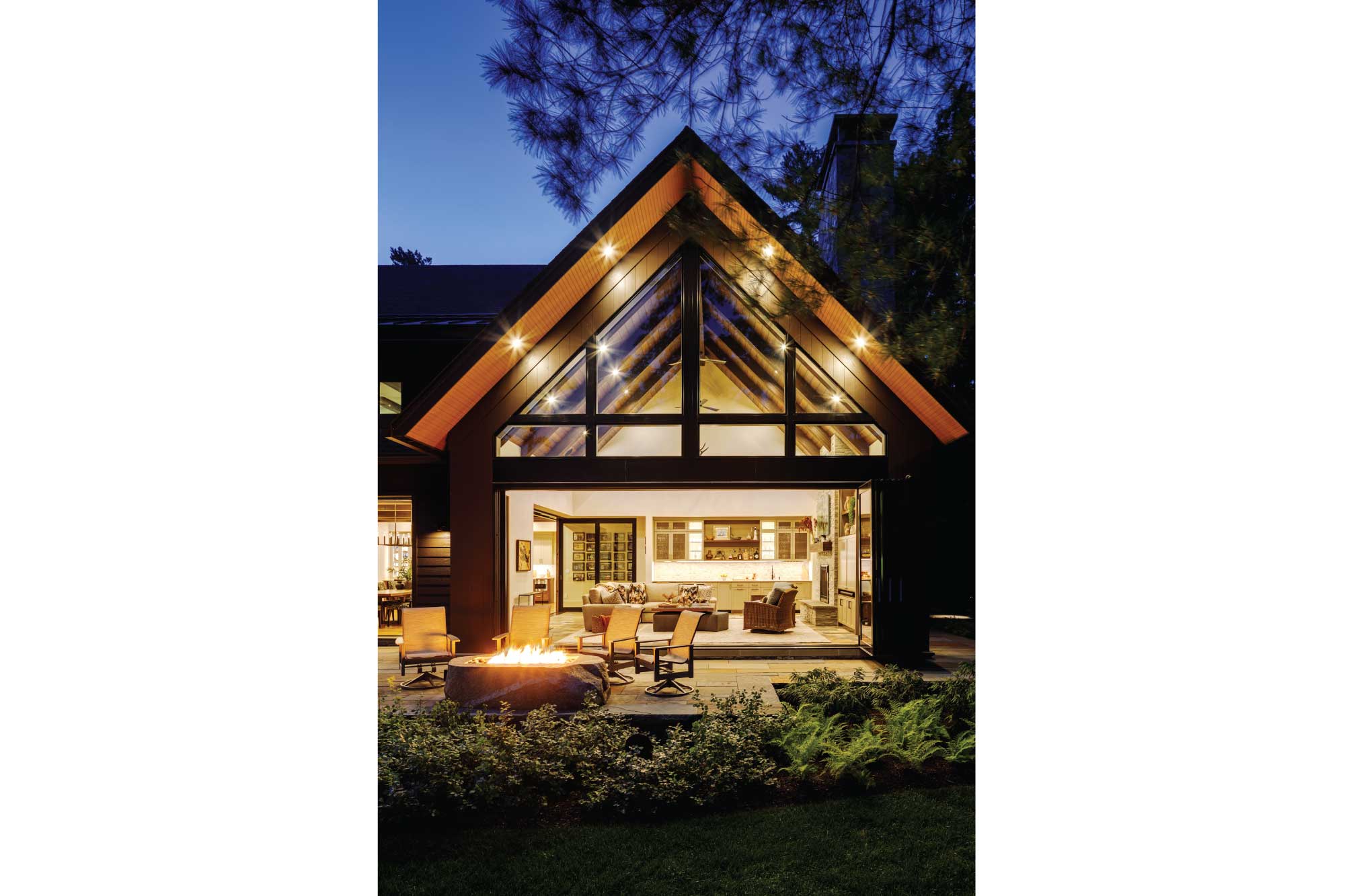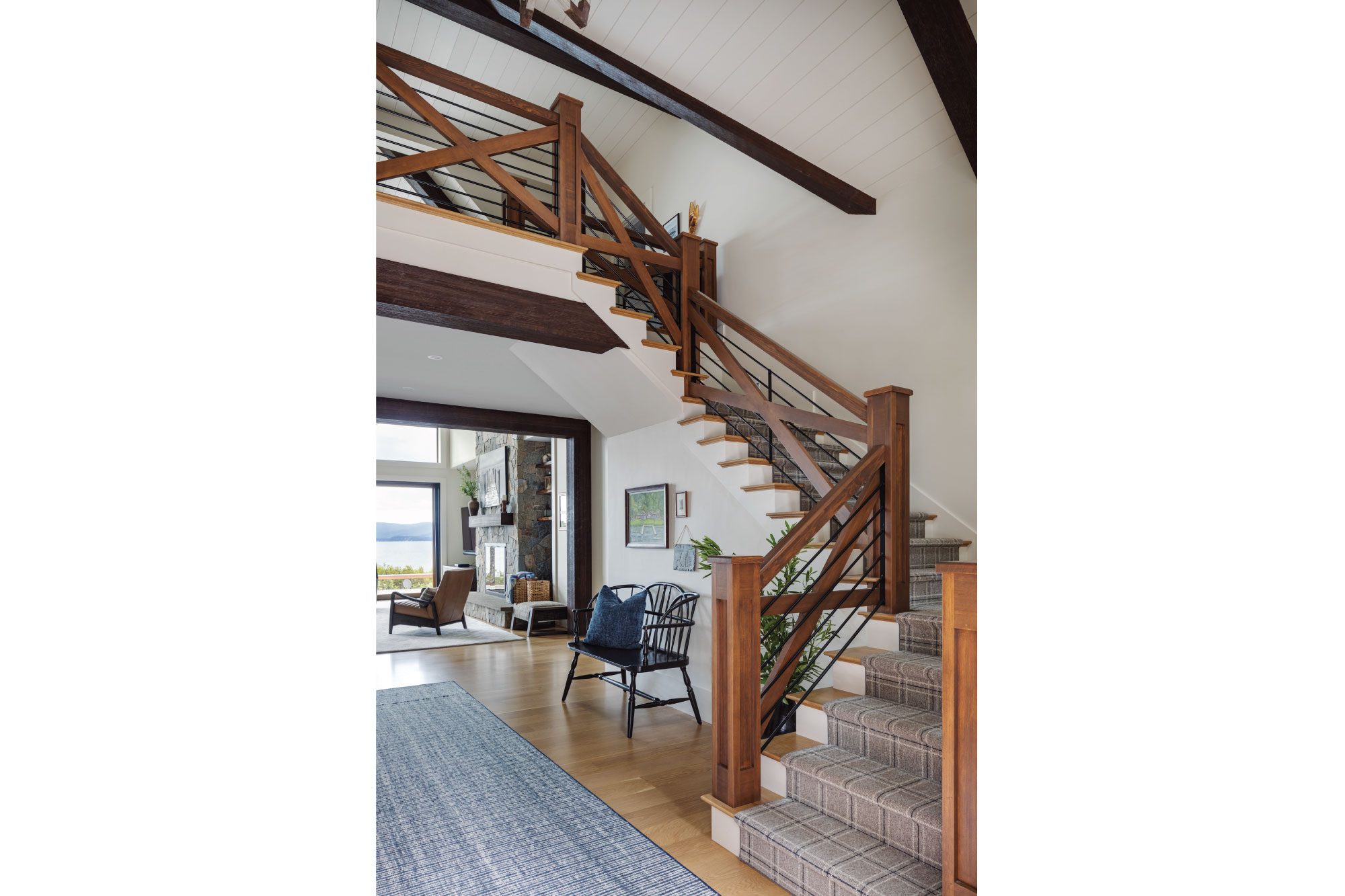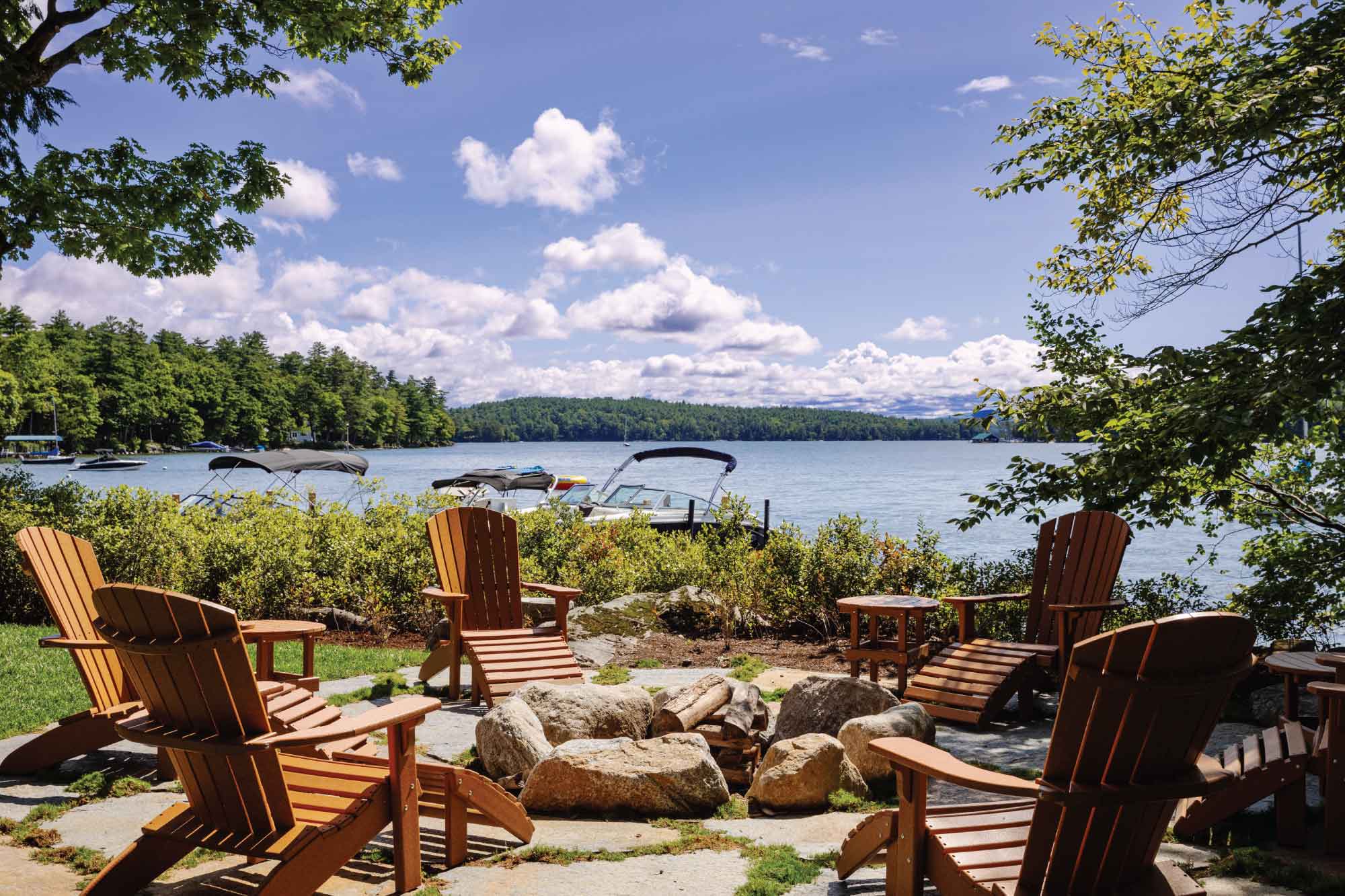 Nestled along the serene shores of Lake Winnipesaukee, this extraordinary 11,000-square-foot family home is designed to accommodate over 20 family members during the warm Lakes Region months. With unparalleled views of the Broads, the residence captures the essence of lakeside living, offering a haven of luxury and comfort. Surrounded by lush greenery, the client sought seamless integration with the landscape, leading to the exterior featuring a dark cladding that harmonizes with the surroundings and expansive openings that mirror the natural beauty of the area.