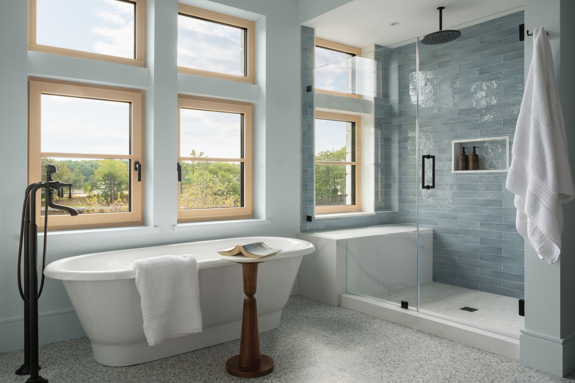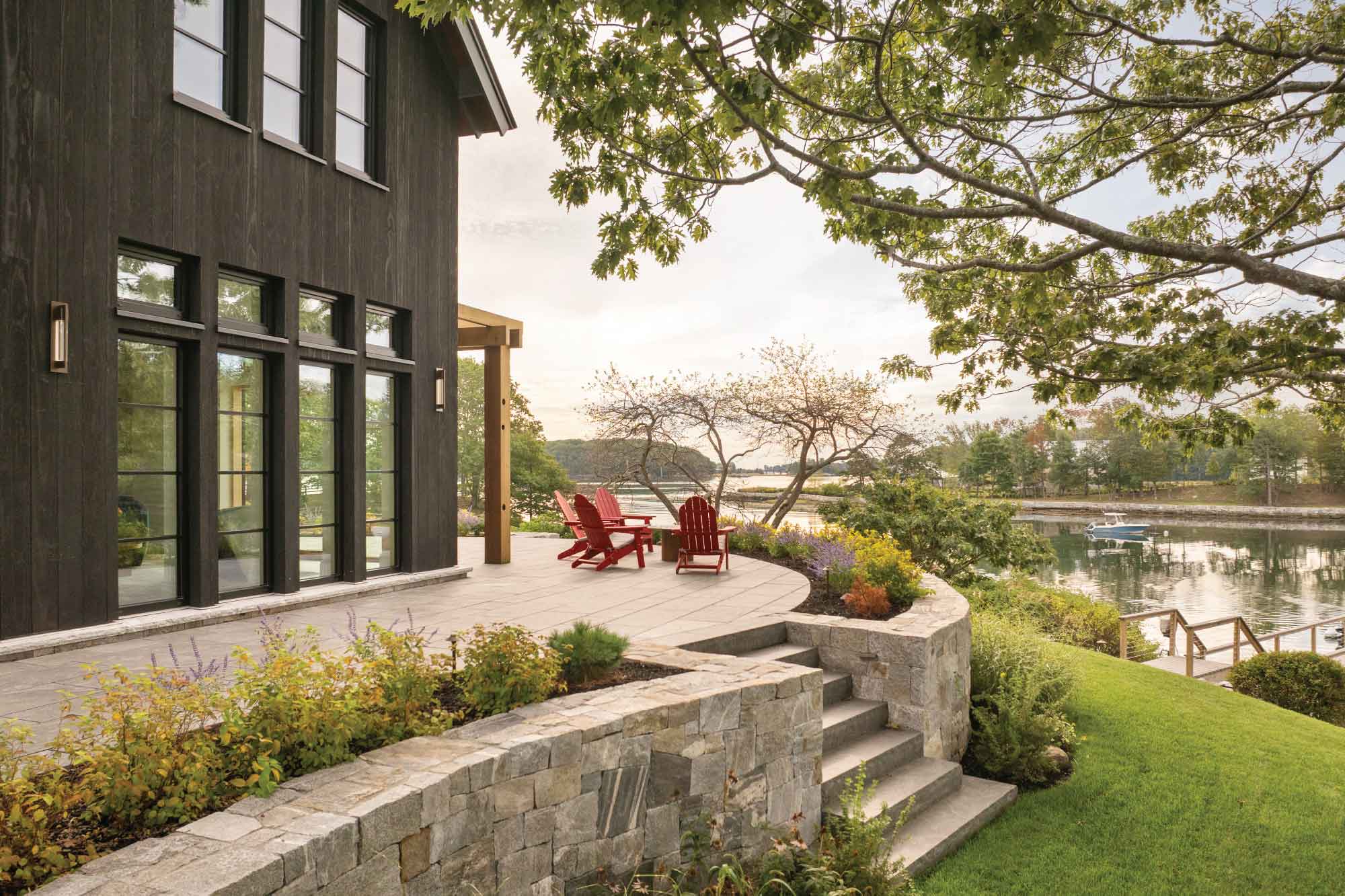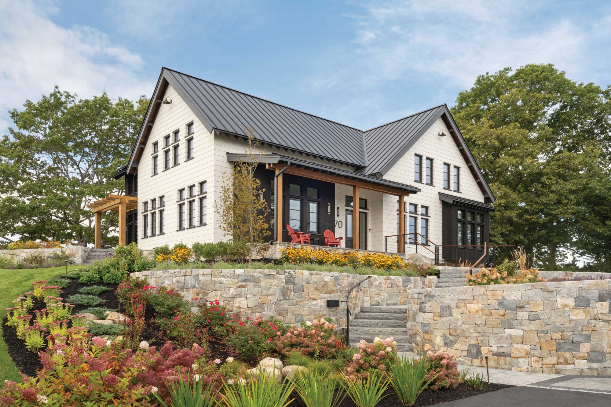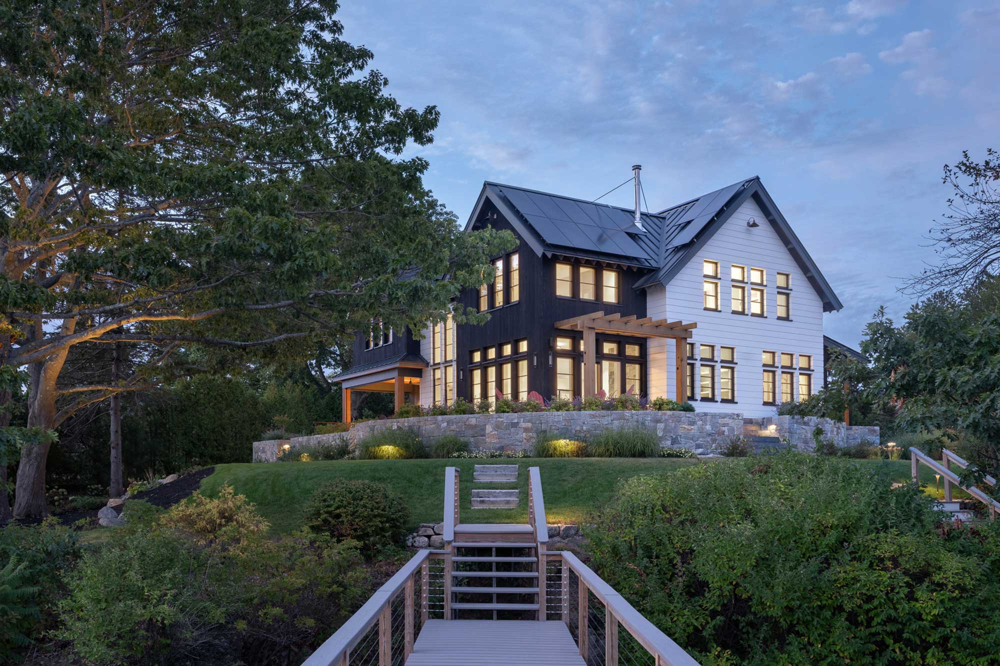 Traditional in form and modern in execution, this 4,000 square foot home is located on the ocean in Portsmouth, New Hampshire. This Net-Zero Ready home is designed to be energy-efficient and sustainable. Roof-top solar panels generate electricity to power the home and a geothermal heating and cooling system that uses the ground as a heat source in the winter and a heat sink in the summer provide efficient and comfortable climate control.