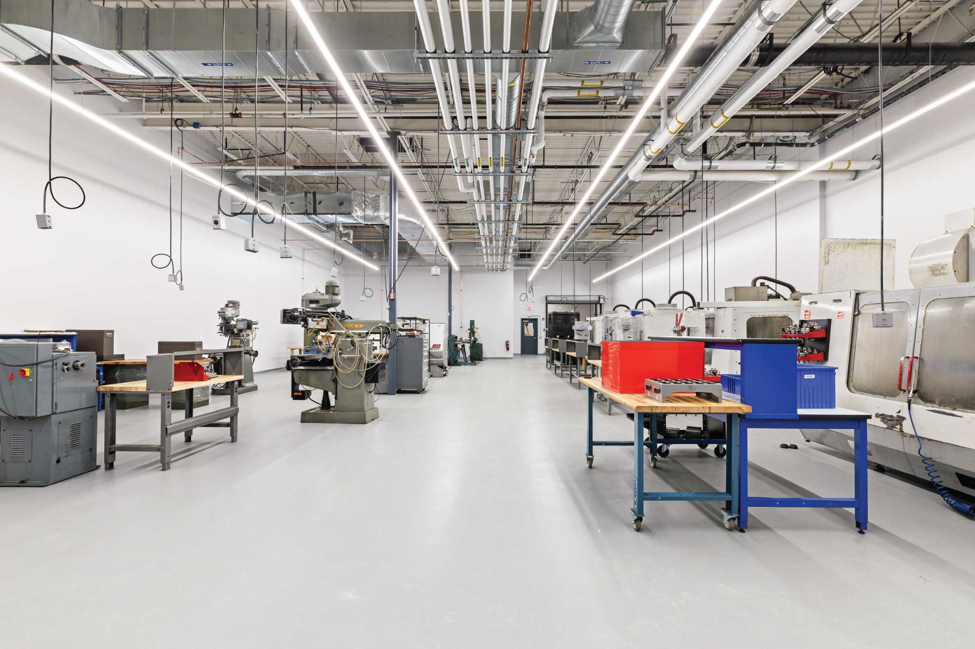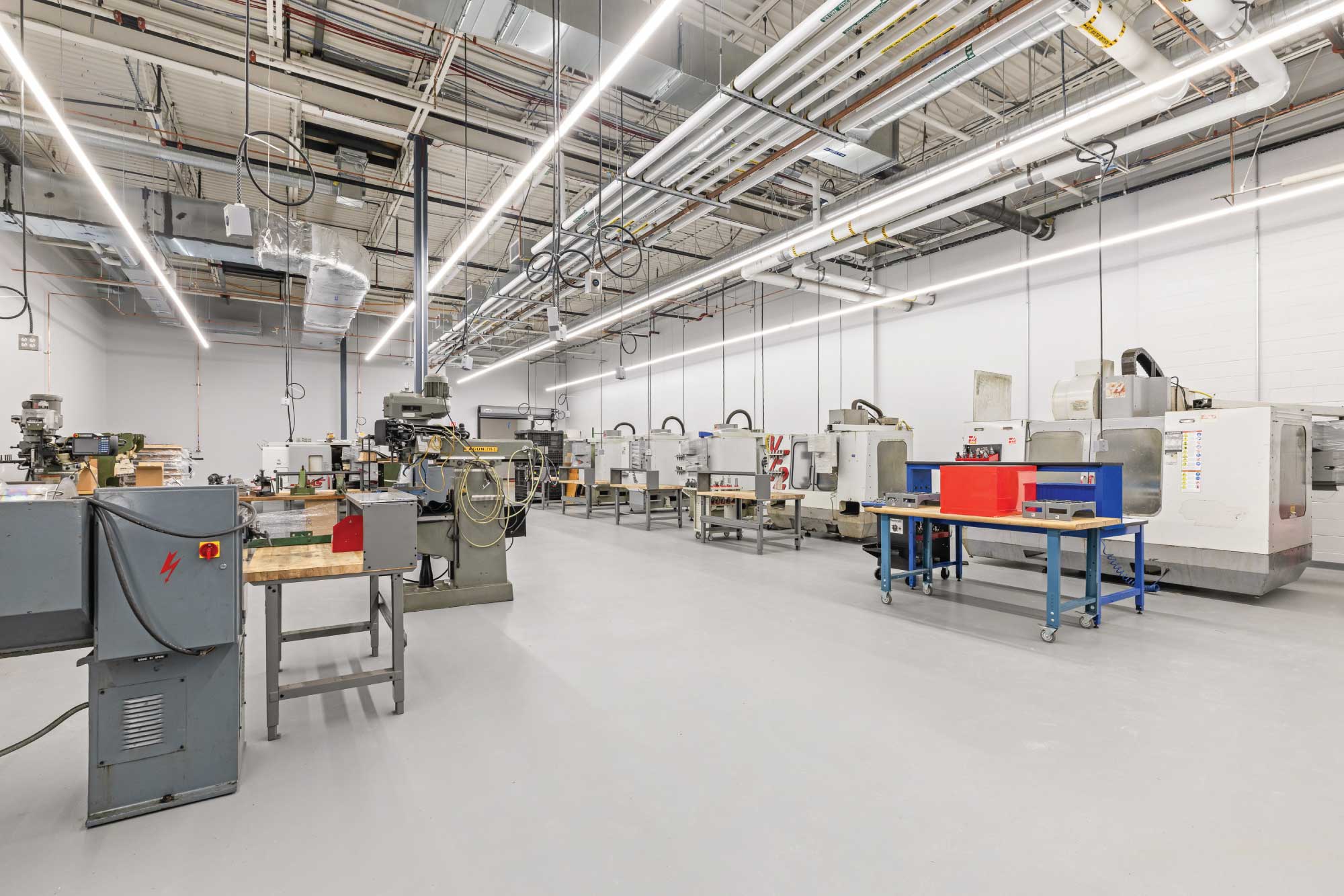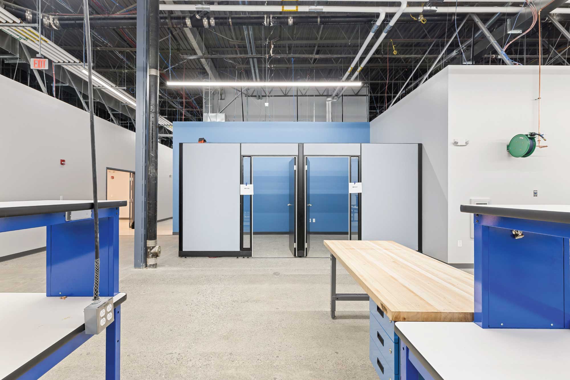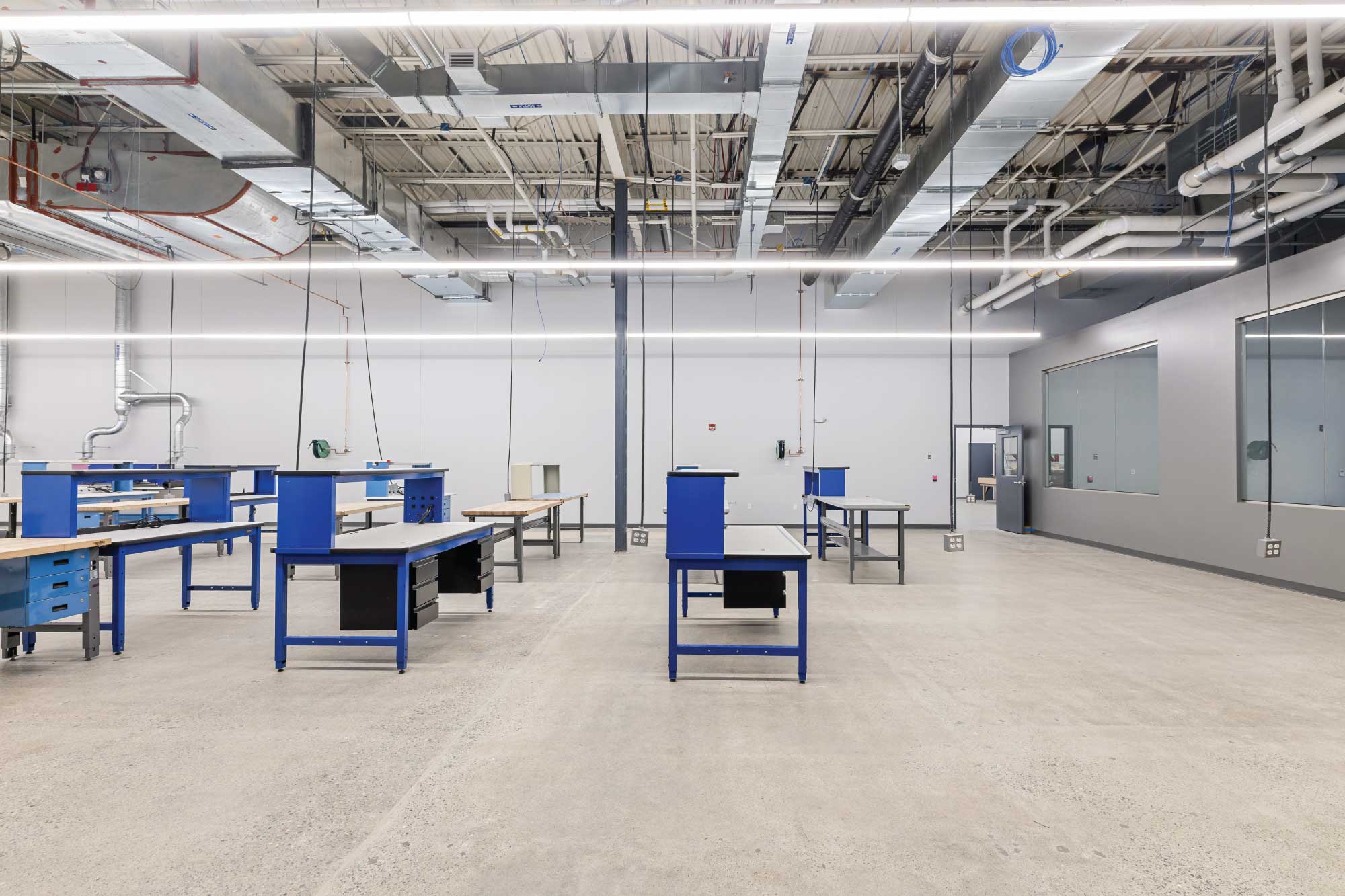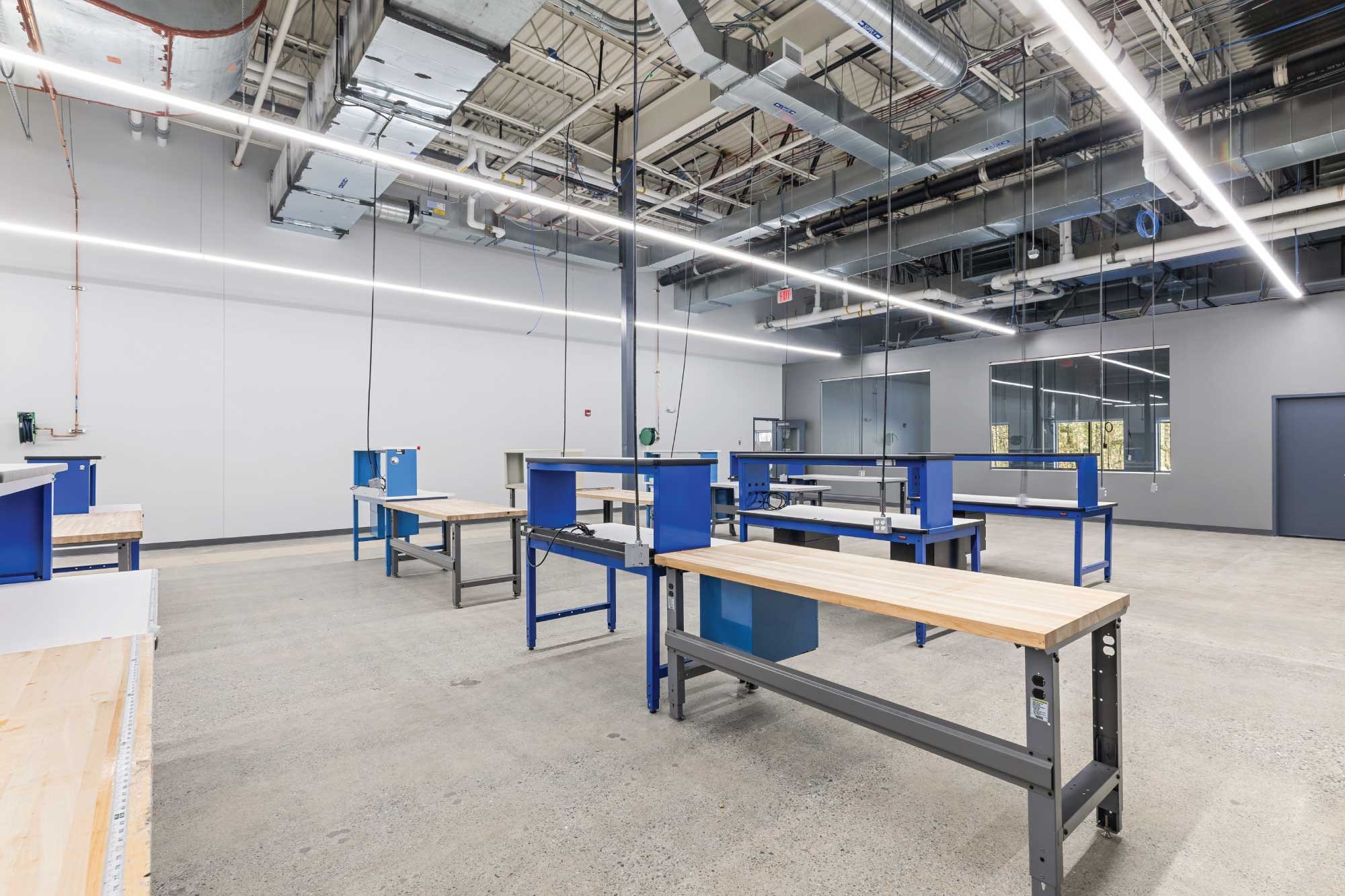 The new facility supports a diverse range of mission-critical functions, including high-bay operations, machine shop, logistics, cable manufacturing, materials and chemical laboratories, SIL rooms, and a secure SCIF environment. The design balances highly specialized technical requirements with efficient planning, enabling DCS to maintain operational continuity while supporting future growth.