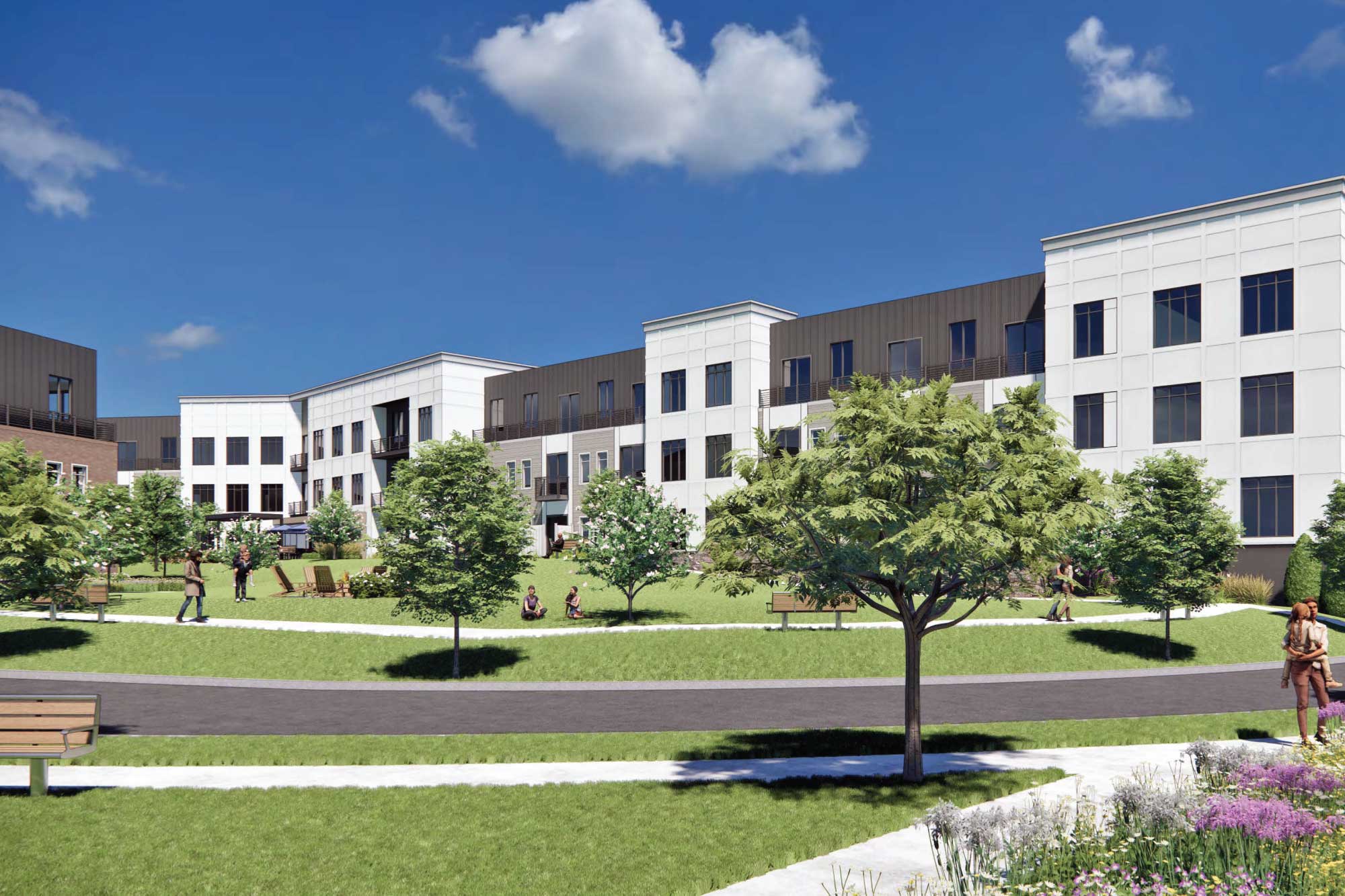 Grafton Woods is a transformative mixed-use development set to reimagine 17 acres on Brandt Lane into a vibrant and sustainable residential community. Designed to meet the needs of modern living, Grafton Woods will offer 491 apartment units, 3,500 square feet of commercial space, and a robust mix of lifestyle amenities—all while honoring the city’s architectural heritage.
